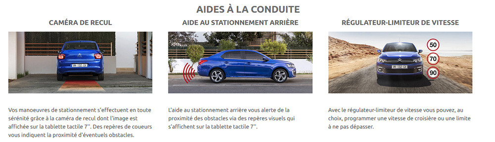 Citroën C-Elysée s’affectionne à présenter des équipements qui participent au plaisir d’être à bord, cette berline propose un juste équilibre entre compacité et espaces intérieurs, avec 5 vraies places. A l’avant les passagers sont considérablement à leur aise, les passagers arrière pourront aisément étendre leurs jambes et jouirent des appuis têtes réglables.